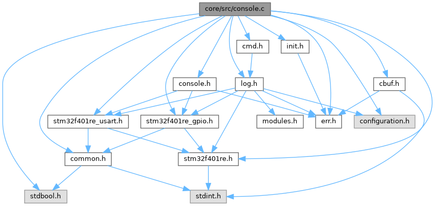 #include <stdbool.h>#include "console.h"#include "cbuf.h"#include "common.h"#include "err.h"#include "stm32f401re.h"#include "stm32f401re_gpio.h"#include "stm32f401re_usart.h"#include "cmd.h"#include "configuration.h"#include "log.h"#include "init.h"