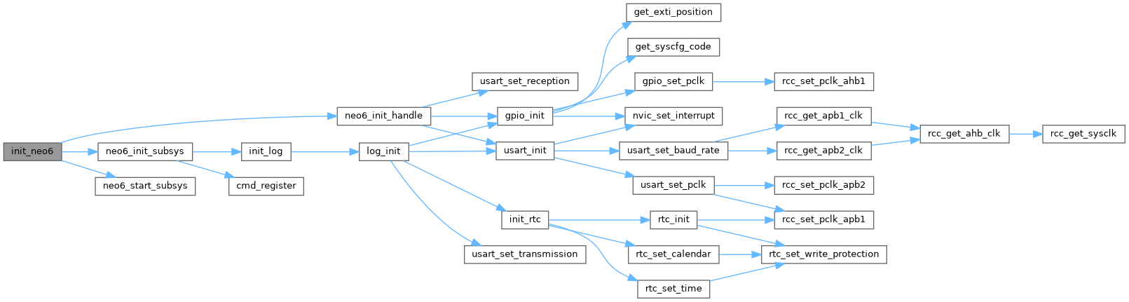 Initializes the NEO-6 subsystem and registers a handle configured for USART6 at 9600 baud, with RX on GPIOA pin 12 and TX on GPIOA pin 11 (alternate function AF8). Starts the subsystem after handle initialization.