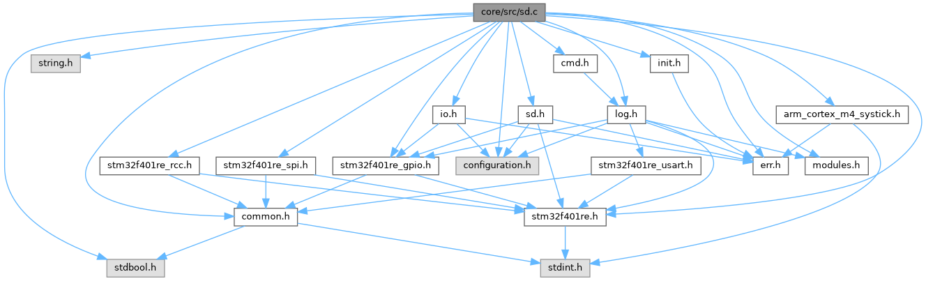 #include <stdbool.h>#include <string.h>#include "sd.h"#include "common.h"#include "err.h"#include "init.h"#include "io.h"#include "log.h"#include "modules.h"#include "cmd.h"#include "configuration.h"#include "stm32f401re.h"#include "stm32f401re_gpio.h"#include "stm32f401re_rcc.h"#include "stm32f401re_spi.h"#include "arm_cortex_m4_systick.h"